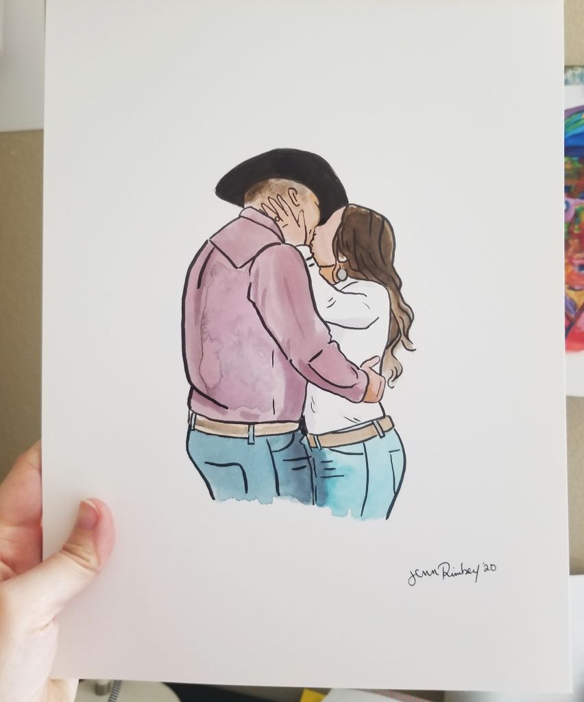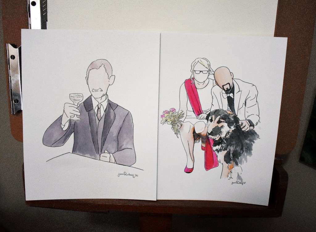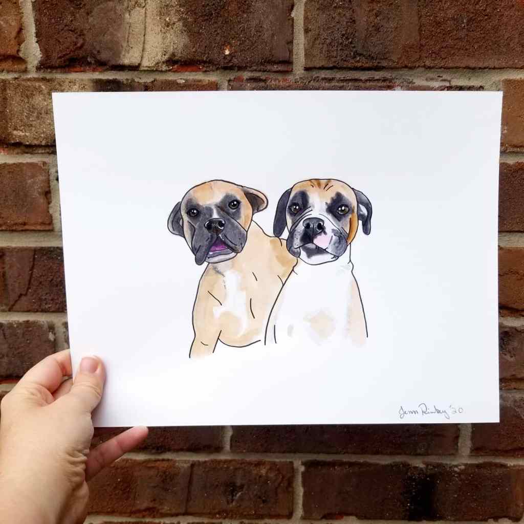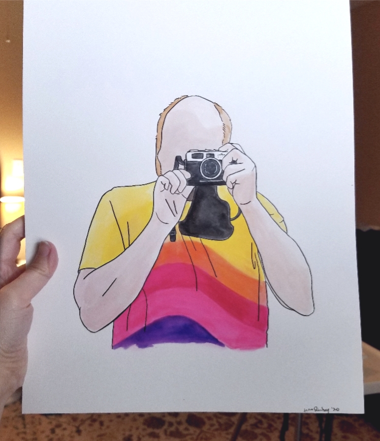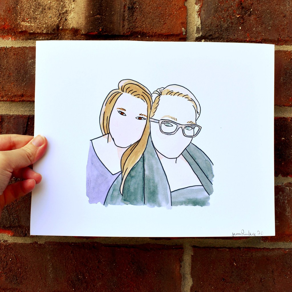 My minimalist watercolor portraits are created on sturdy white Bristol paper. They are painted with bright watercolors and outlined in black.