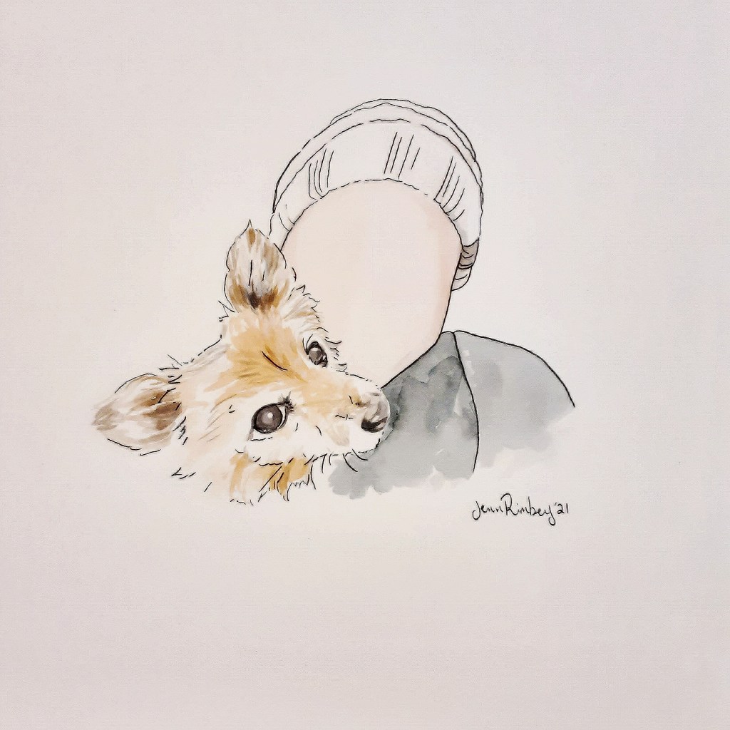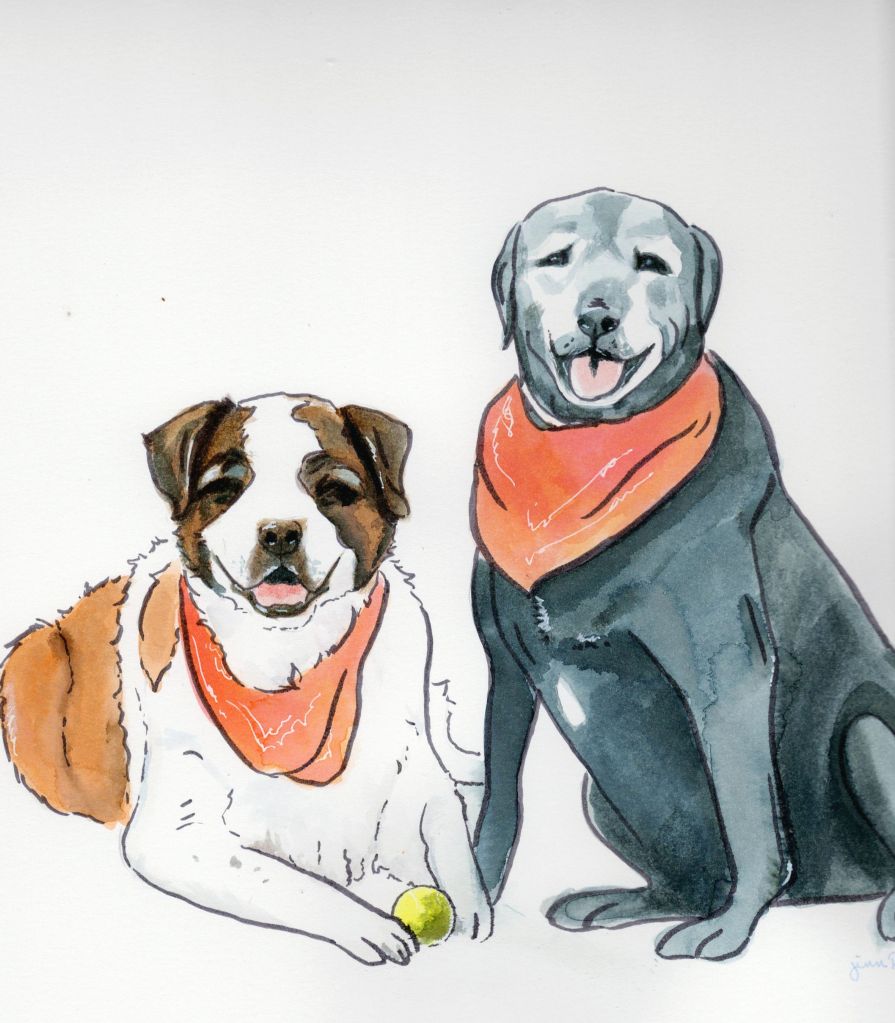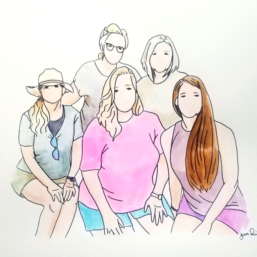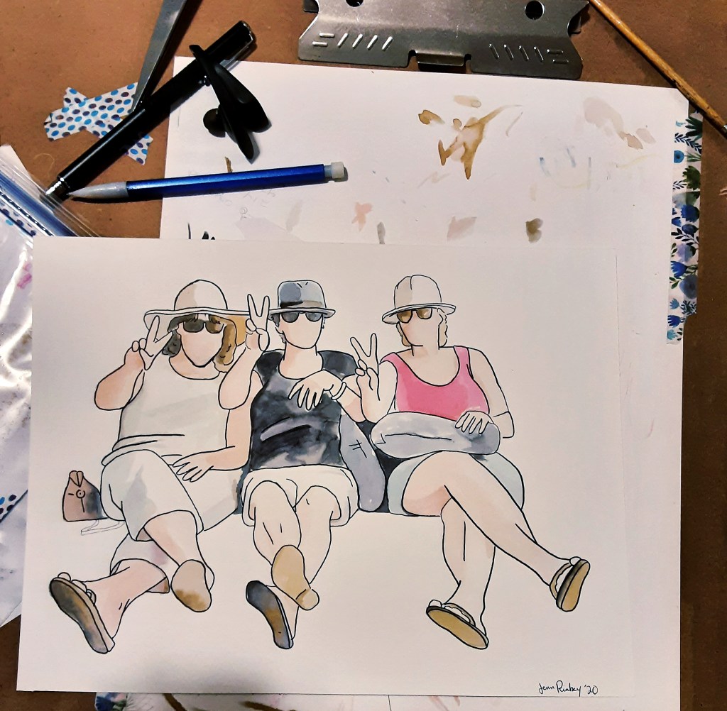 My minimalist watercolor portraits are created on sturdy white Bristol paper. They are painted with bright watercolors and outlined in black.