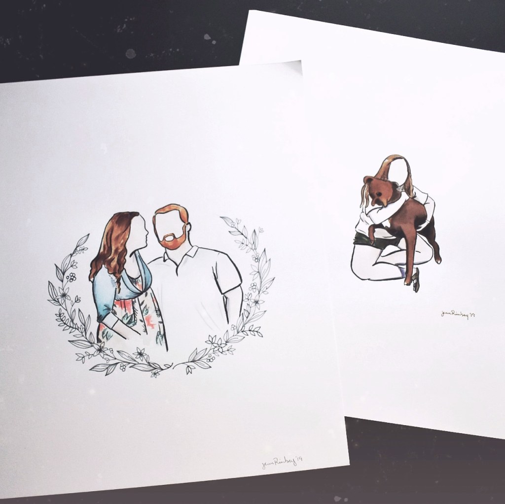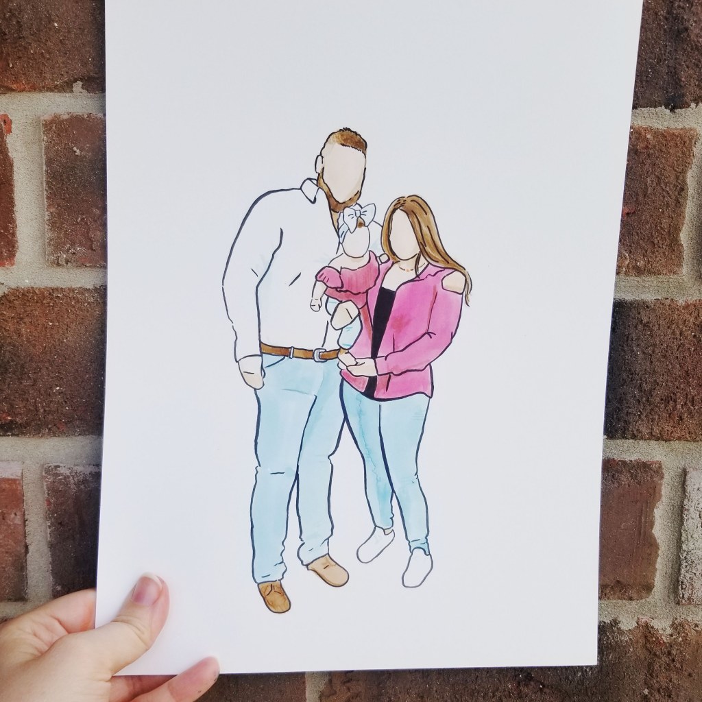 My digital minimalist portraits are created in black and white from your photos with some tracing. Digital portraits will be emailed to you for you to print anywhere you choose or you can request for me to have them printed for you on matte cardstock.